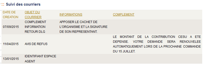 Vous avez la possibilité de consulter l'historique des courriers sur l'exercice en cours et l'exercice précédente émis par le C.G.O.S.