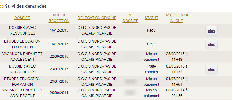 L’historique affiche les demandes de l’exercice en cours