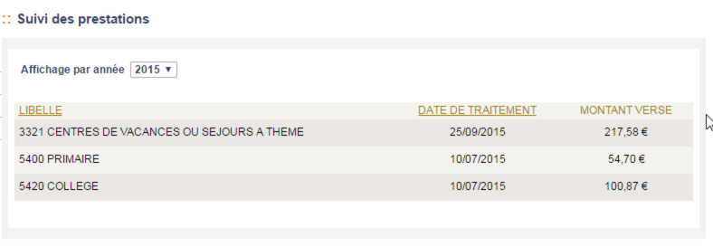 L’historique affiche les prestations de l’exercice en cours et de l’exercice précédent.